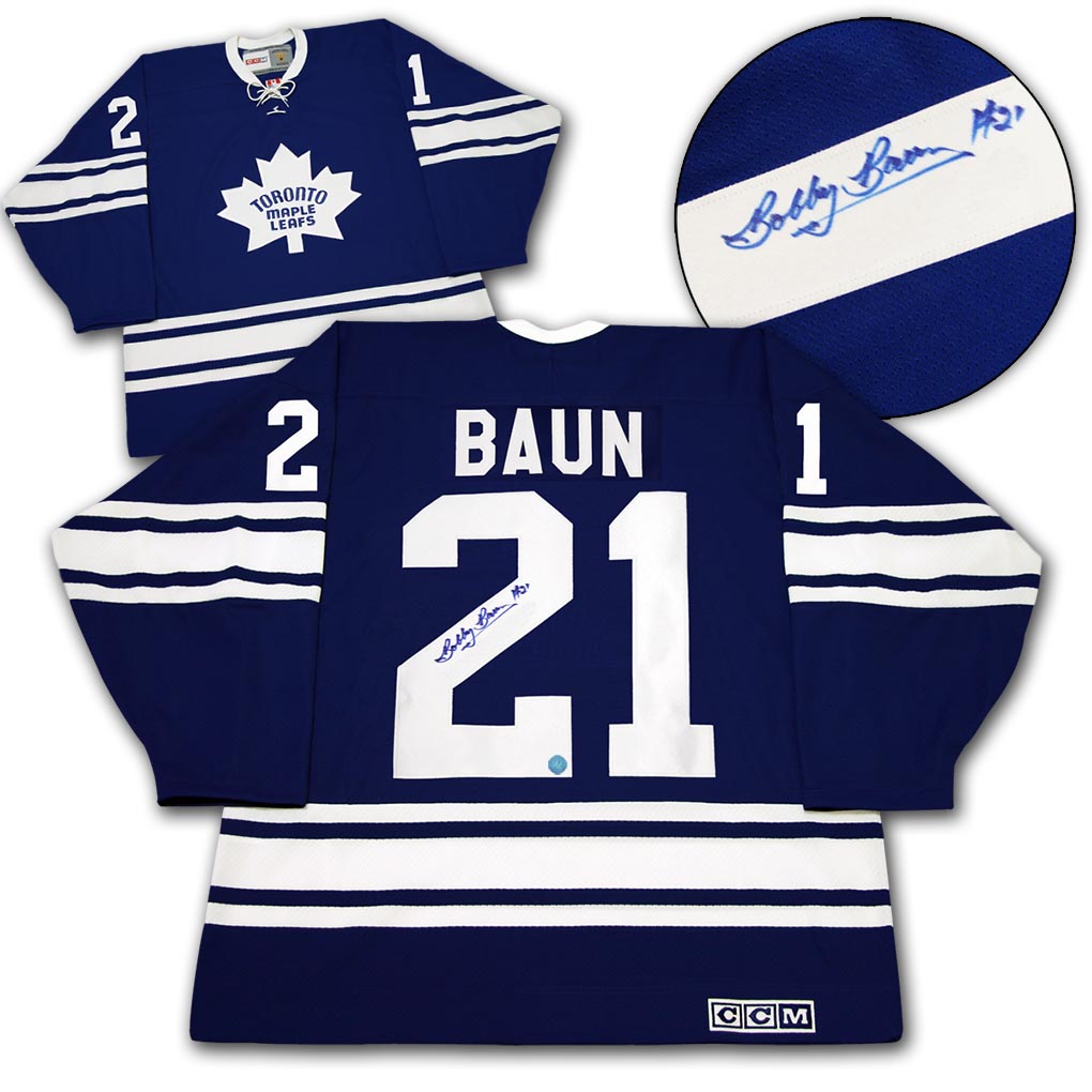 Features- Bobby Baun Toronto Maple Leafs Autographed 1967 Stanley Cup Retro CCM Jersey