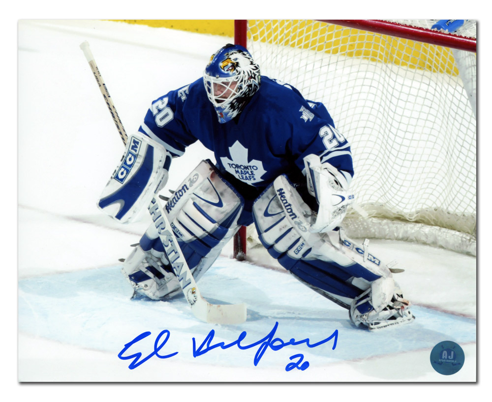 Features- Ed Belfour Toronto Maple Leafs Autographed Hockey Goalie Photo