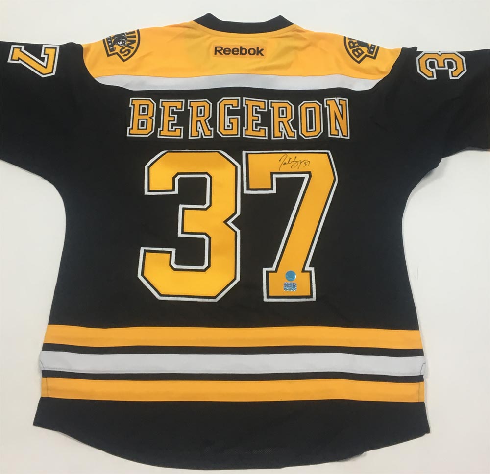 AJ Sports World BERP10200A Patrice Bergeron Boston Bruins Autographed Black Reebok Premier Jersey
