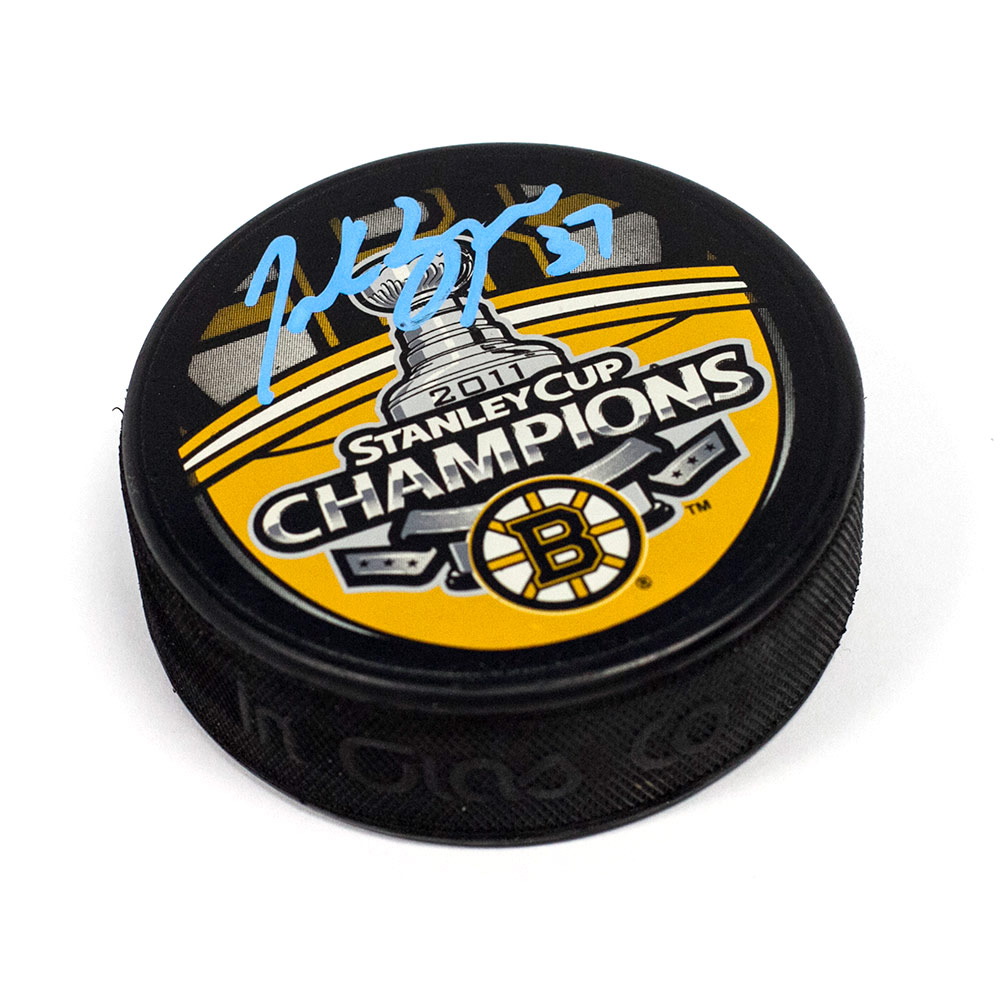 Features- Patrice Bergeron Boston Bruins Autographed 2011 Stanley Cup Champions Puck