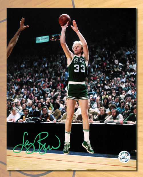 Features- Larry Bird Boston Celtics Autographed Basketball Shot Photo - Bird Holo
