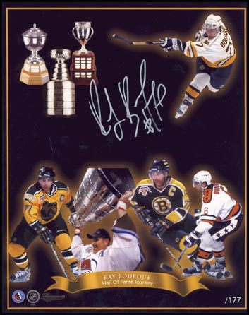 To protect your investment, a Certificate Of Authenticity and tamper evident hologram from A.J. Authentic is included with your purchase for an unconditional lifetime guarantee of authenticity. - AJ Sports World BOUR102028 RAY BOURQUE Hall Of Fame Journey Autographed 8x10 Photo Limited num. - 177 Print