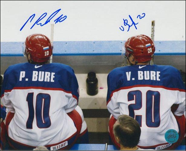 Pavel and Valeri Bure Dual Signed Team Russia Olympic Hockey Photo Comes fully certified with Certificate of Authenticity and tamper-evident hologram.