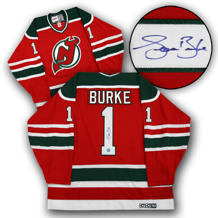 AJ Sports World BURS135000 SEAN BURKE New Jersey Devils SIGNED Retro Green and Red JERSEY