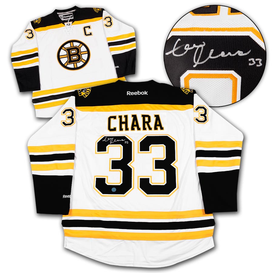 Features- Zdeno Chara Boston Bruins Autographed White Reebok Premier Hockey Jersey