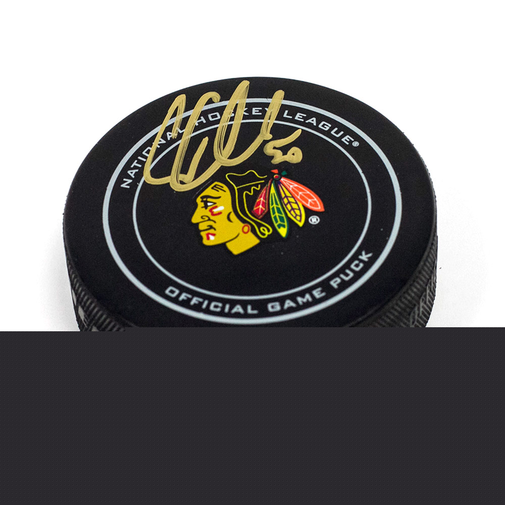 Features- Corey Crawford Chicago Blackhawks Autographed Official NHL Game Puck