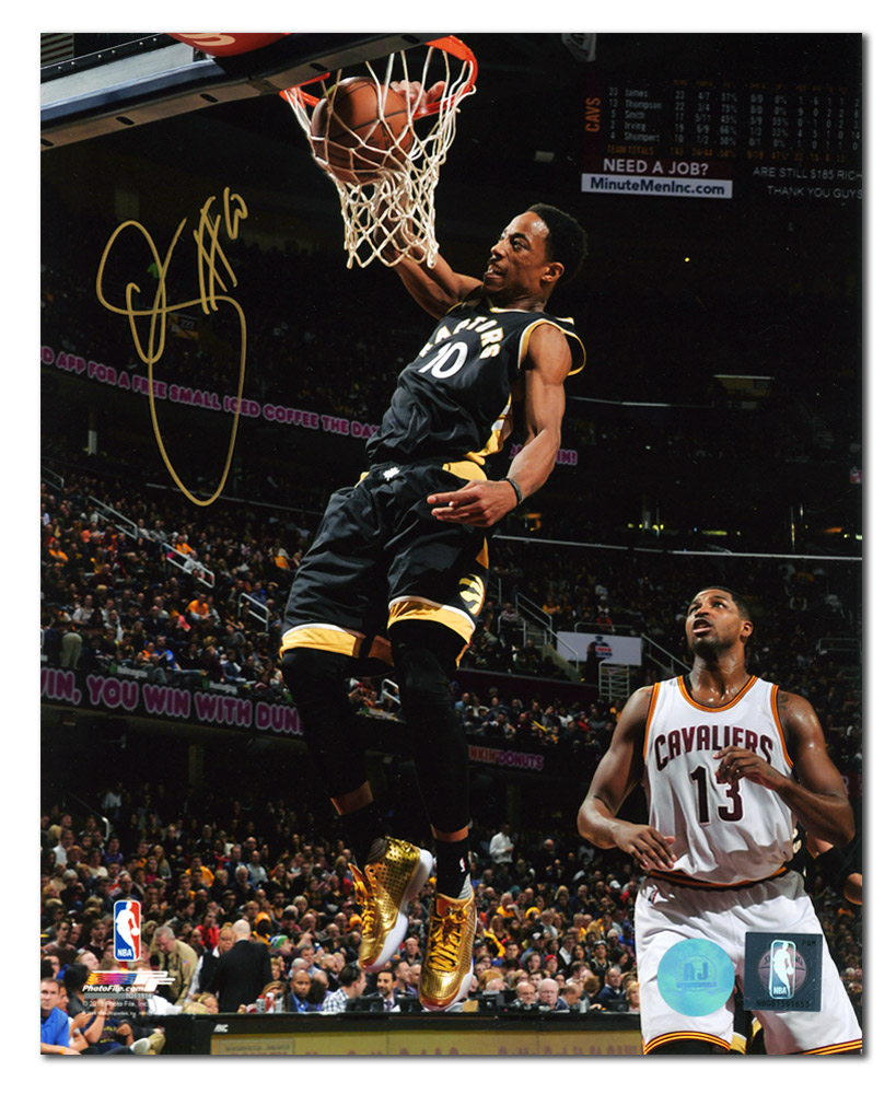 Features- DeMar DeRozan Toronto Raptors Autographed Liquid Gold Shoes Dunk Photo