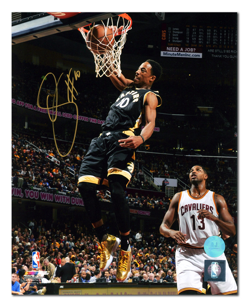 Features- DeMar DeRozan Toronto Raptors Autographed Liquid Gold Shoes Dunk Photo