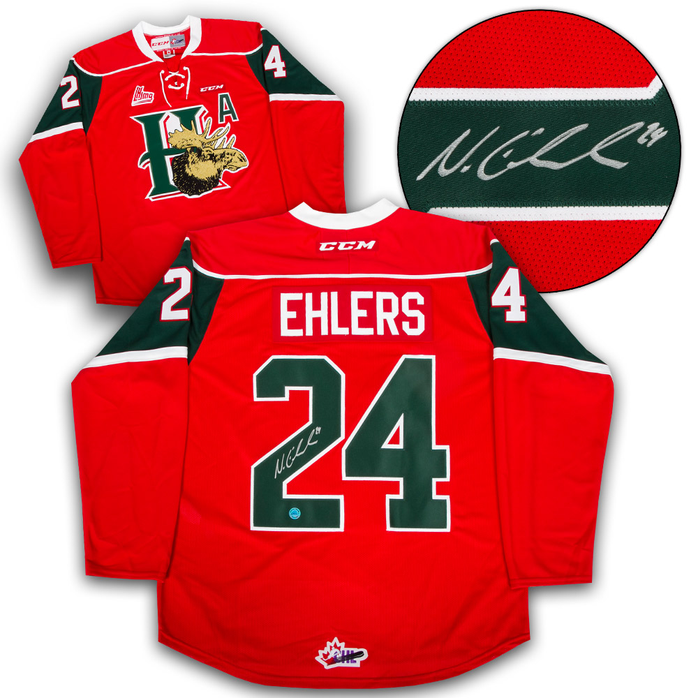 Features- Nikolaj Ehlers Halifax Mooseheads Autographed CHL CCM Hockey Jersey