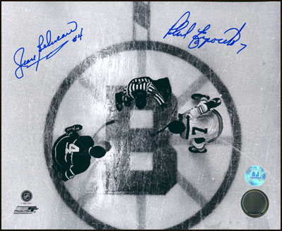 AJ Sports World ESPP102027 PHIL ESPOSITO vs JEAN BELIVEAU Overhead Face-Off DUAL SIGNED 8x10 Photo