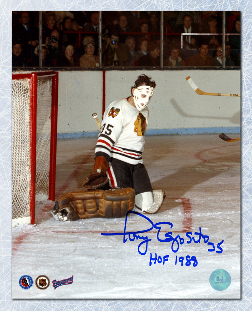 Features- Tony Esposito Chicago Blackhawks Autographed Butterfly Save Goalie Photo