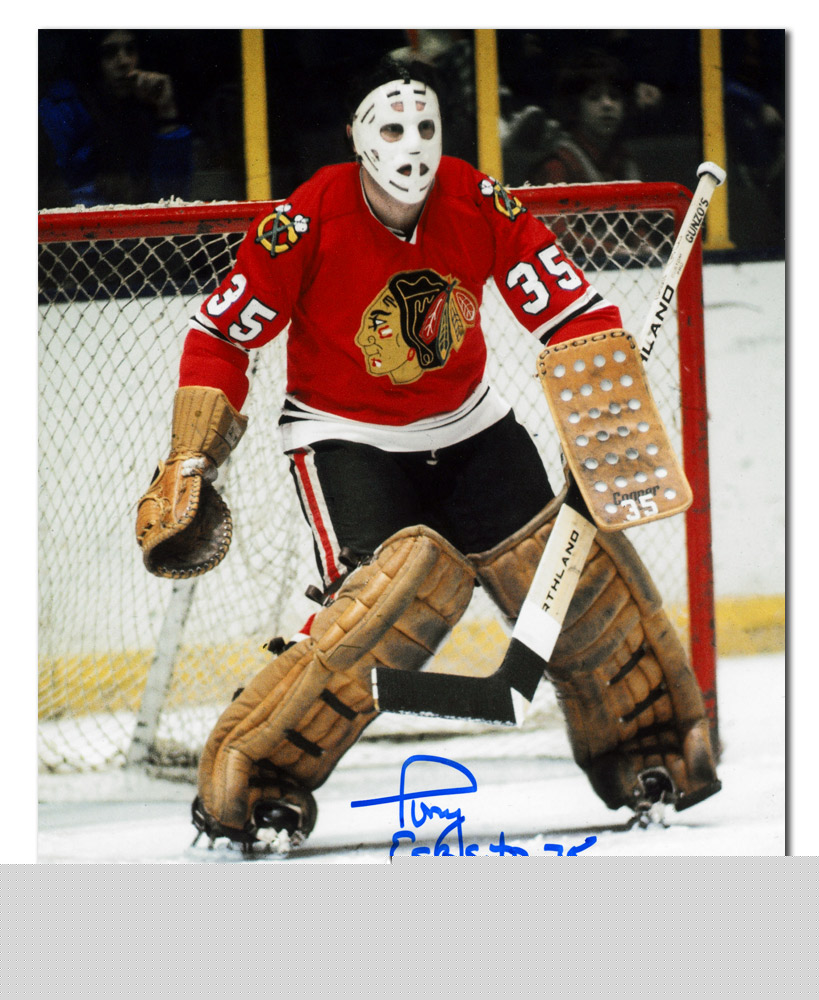 Features- Tony Esposito Chicago Blackhawks Autographed Hockey Goalie Photo