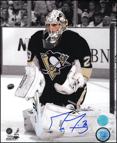 This Hand-signed Photo has been beautifully and personally autographed by Marc-Andre Fleury. To protect your investment a Certificate Of Authenticity and tamper evident hologram from A.J. Authentic is included with your purchase for an unconditional lifetime guarantee of authenticity.
