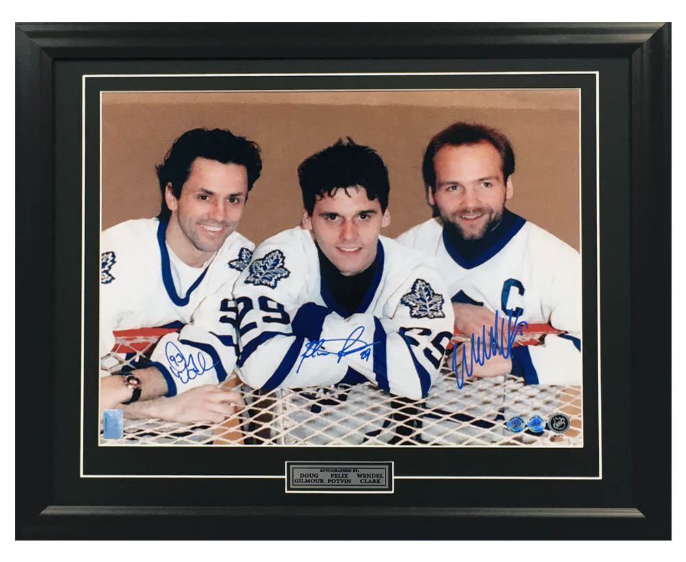 AJ Sports World GILD10453B 23 x 27 in. Doug Gilmour Wendel Clark and Felix Potvin Signed Toronto Maple Leafs Frame