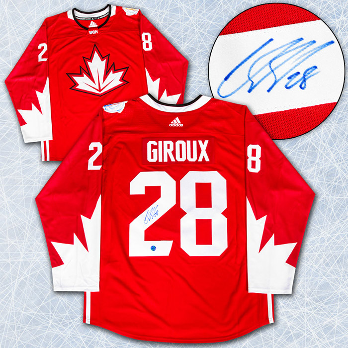 Features- Claude Giroux Team Canada Autographed World Cup Adidas Hockey Jersey