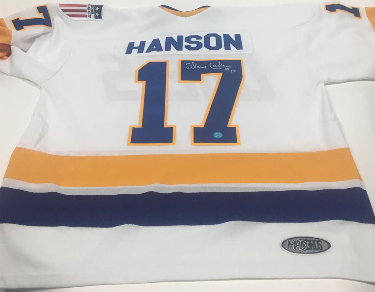 Features- Steve Carlson Charleston Chiefs Autographed Hanson Bros Slap Shot Hockey Jersey