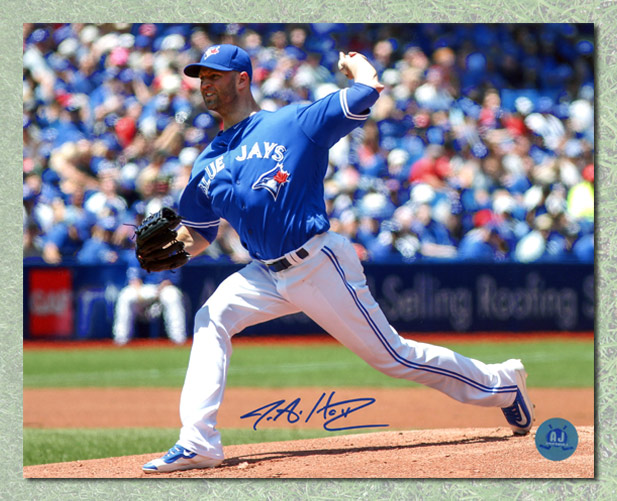 Features- J. A. Happ Toronto Blue Jays Autographed Baseball Home Start Photo