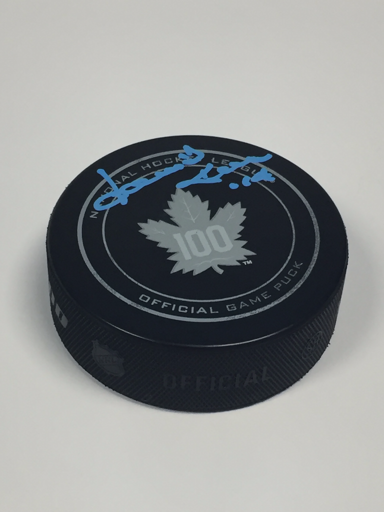 Features- Dave Keon Toronto Maple Leafs Autographed 100th Anniversary Game Model Puck