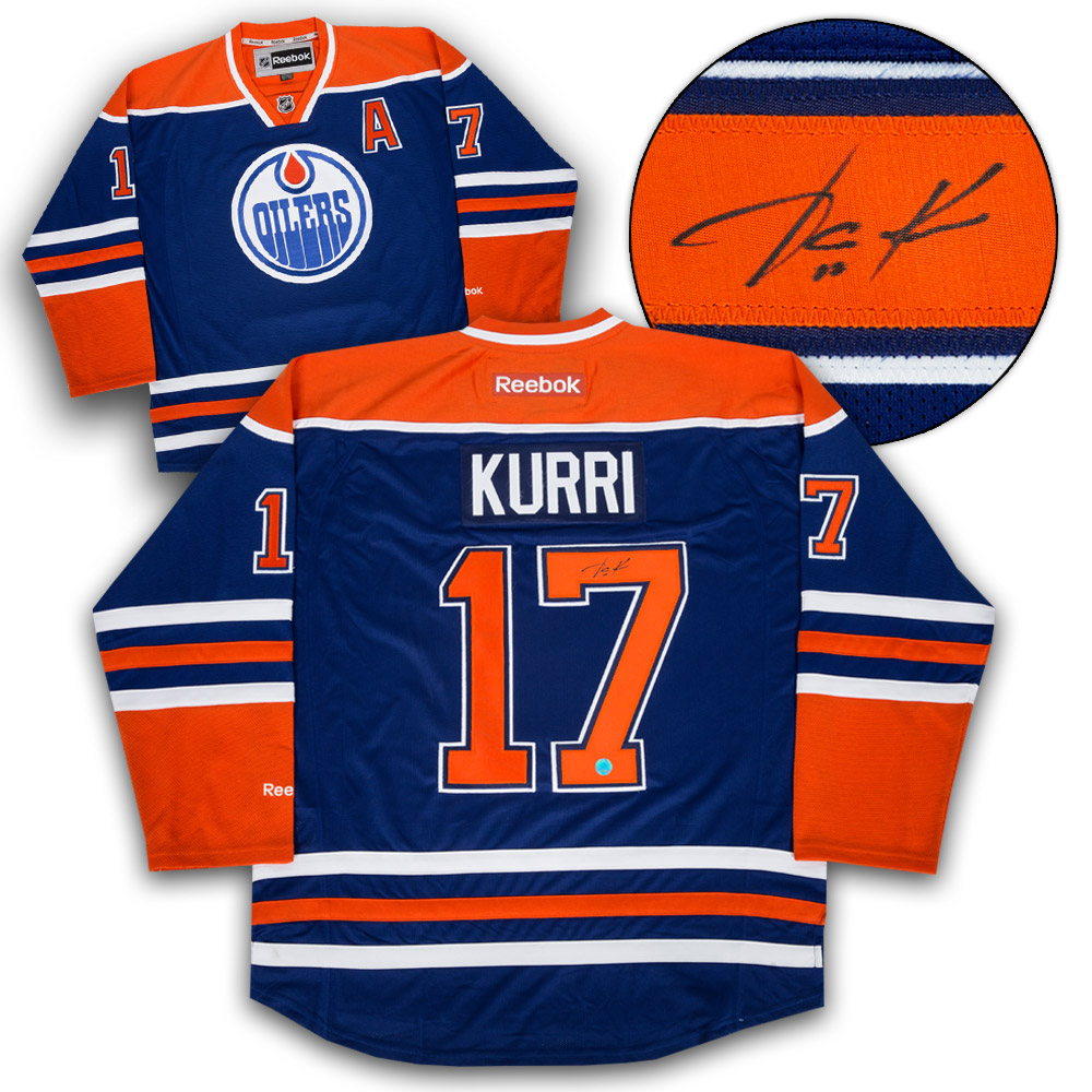 AJ Sports World KURJ12400A Jari Kurri Edmonton Oilers Autographed Blue Reebok Premier Hockey Jersey