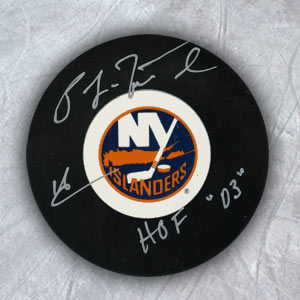 AJ Sports World LAFP115050 PAT LAFONTAINE New York Islanders Autographed Hockey Puck with HOF Inscription