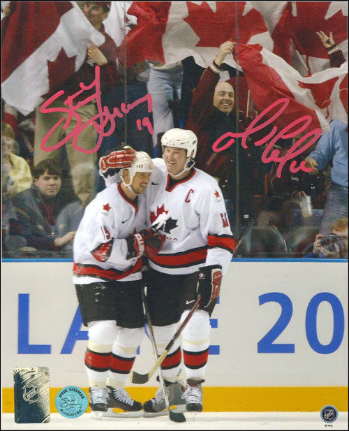 AJ Sports World LEMM996022 Mario Lemieux and Steve Yzerman Dual Signed Team Canada 2002 Olympic 8x10 Photo
