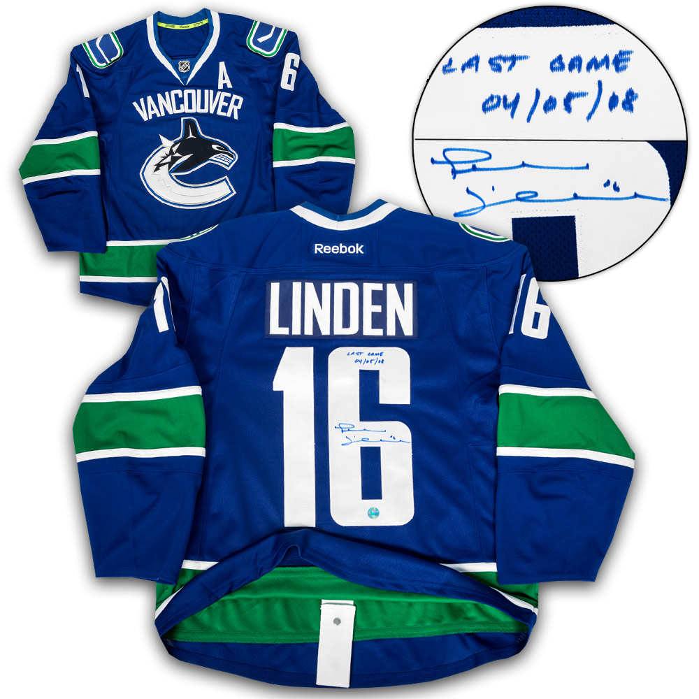 Features- Trevor Linden Vancouver Canucks Signed & Dated Last Game Authentic on Ice Jersey