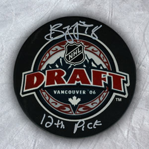 AJ Sports World LITB117050 Bryan Little 2006 NHL Draft Day Puck Autographed w- 12th Pick Inscription