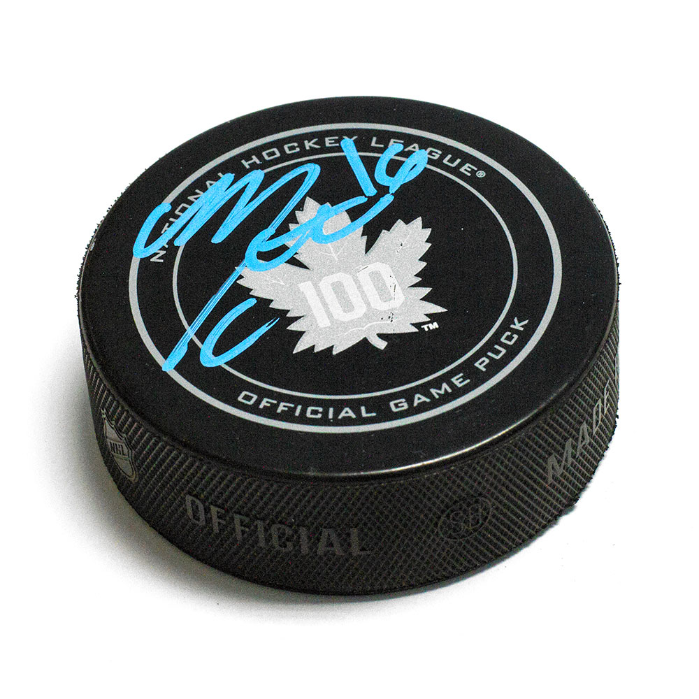 Features- Mitch Marner Toronto Maple Leafs Autographed 100th Anniversary Game Model Puck