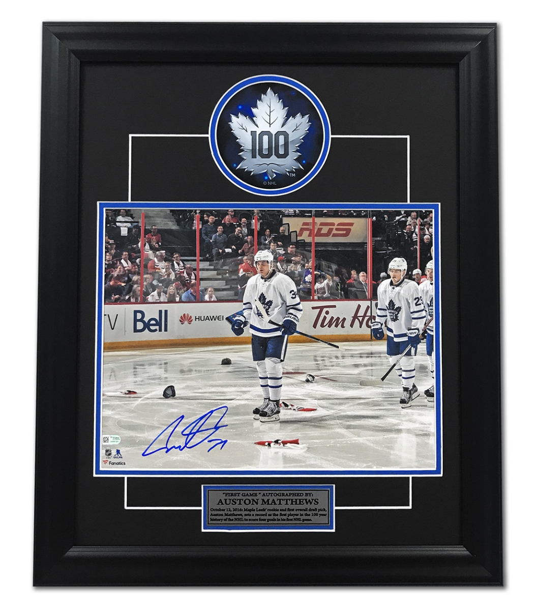 Features- Auston Matthews Toronto Maple Leafs Autographed 1st Game - 4 Goal Frame