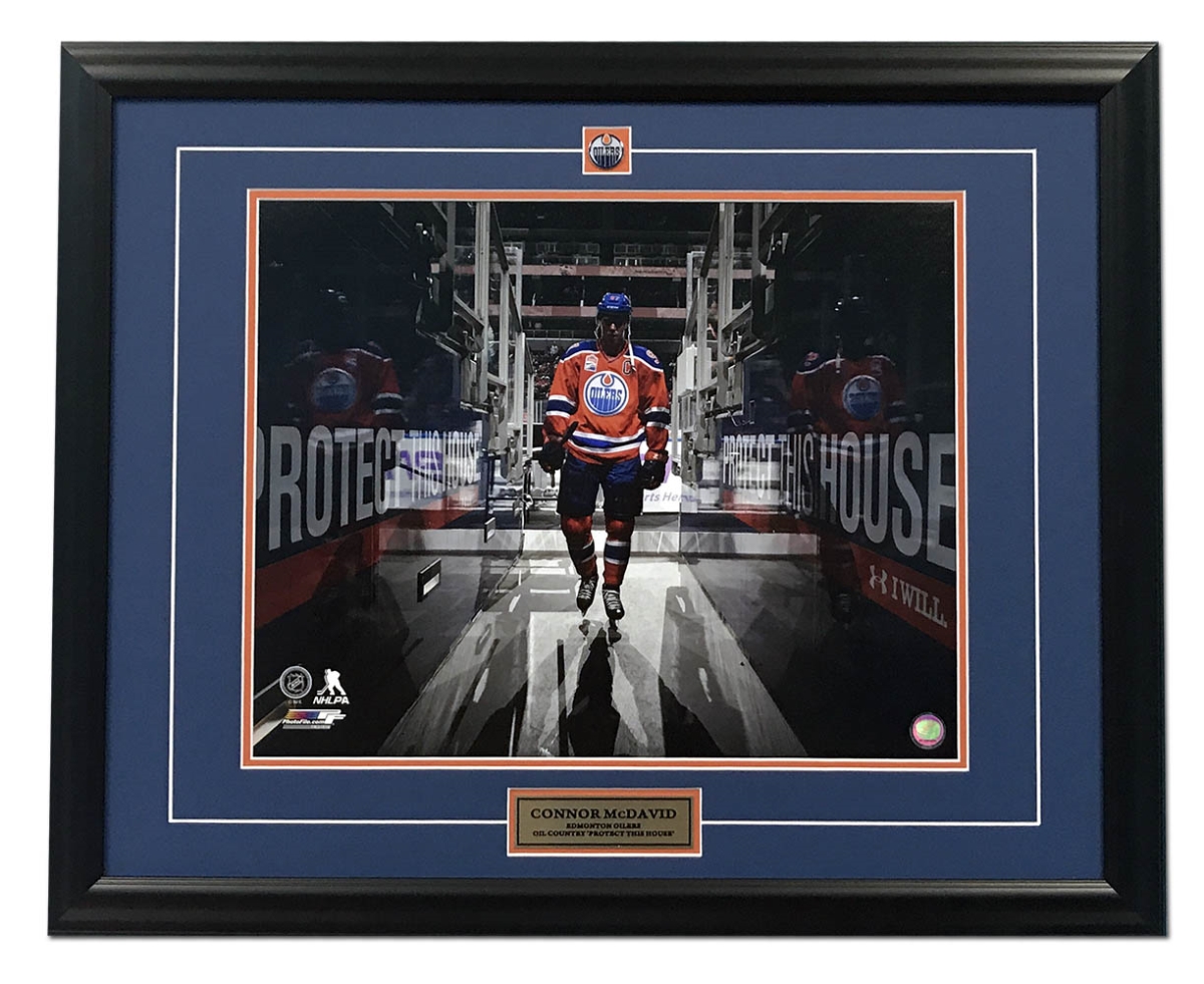 AJ Sports World MCDC12456B 31 x 25 in. Connor McDavid Edmonton Oilers Rogers Place Protect this House Frame