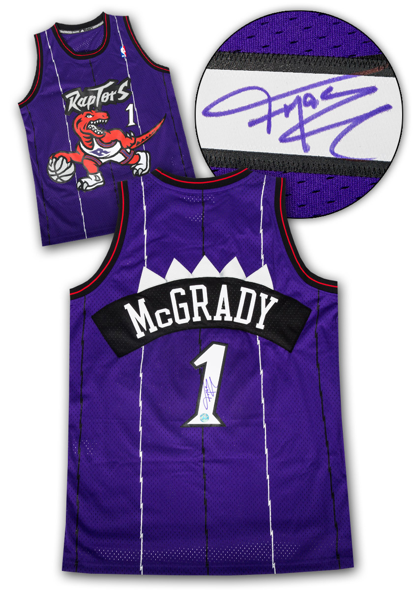 Features- Tracy McGrady Toronto Raptors Autographed Purple Rookie NBA Swingman Jersey