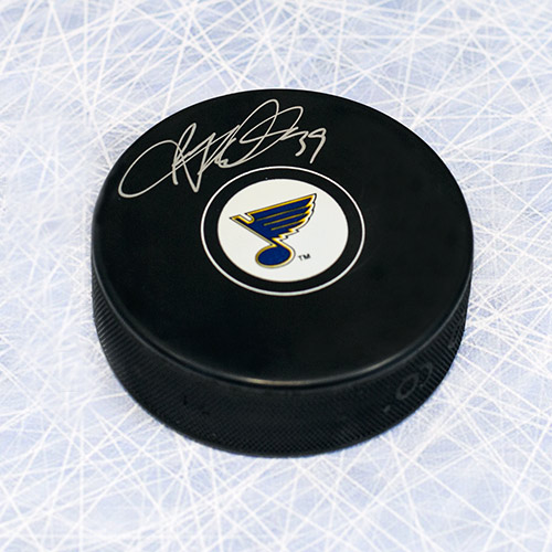 Features- Ryan Miller St. Louis Blues Autographed Hockey Puck