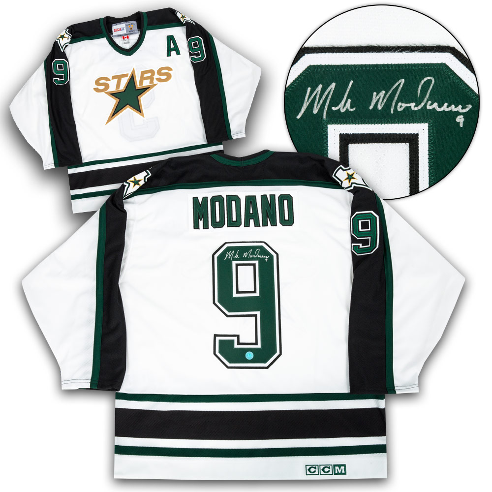 Features- Mike Modano Dallas Stars Autographed 1st Texas Season Retro CCM Hockey Jersey