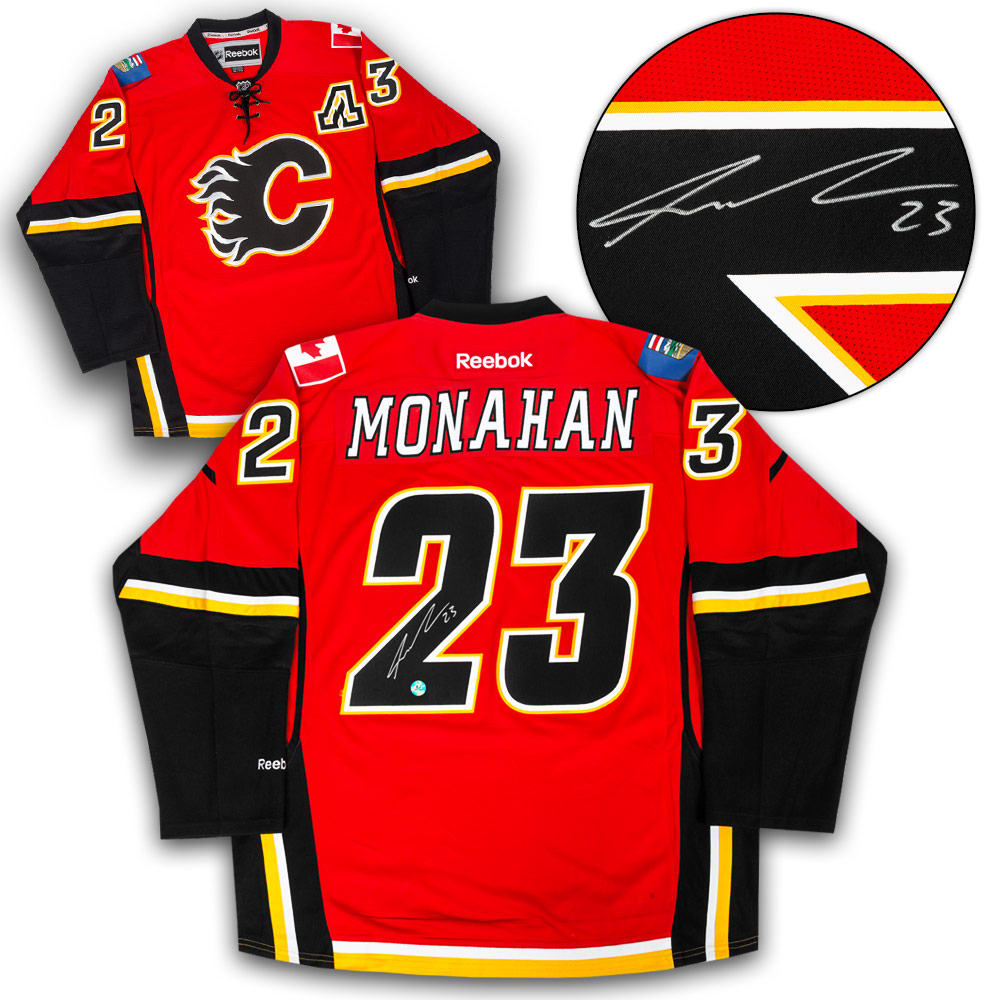 Features- Sean Monahan Calgary Flames Autographed Reebok Premier Hockey Jersey