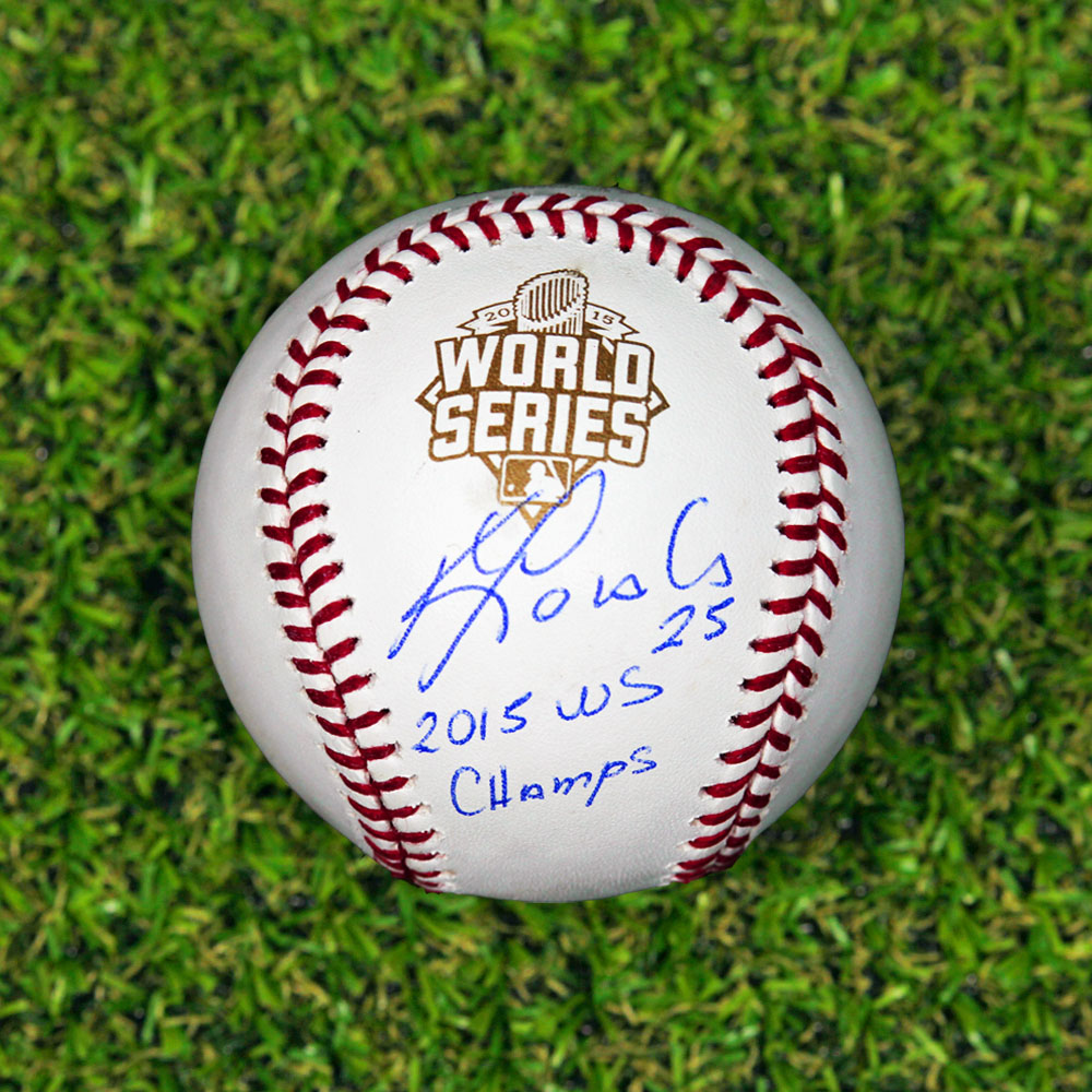Features- Kendrys Morales Autographed Official 2015 World Series Baseball with 2015 WS Note