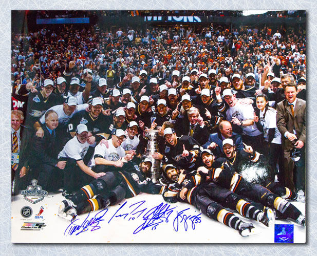 Features- Anaheim Ducks 2007 Stanley Cup Signed by Selanne Getlzaf Giguere & Perry