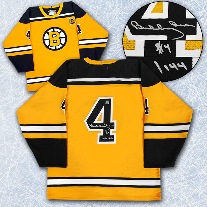 Features- Bobby Orr Boston Bruins Signed 50th Anniversary Rookie Hockey Jersey No. 144 GNR