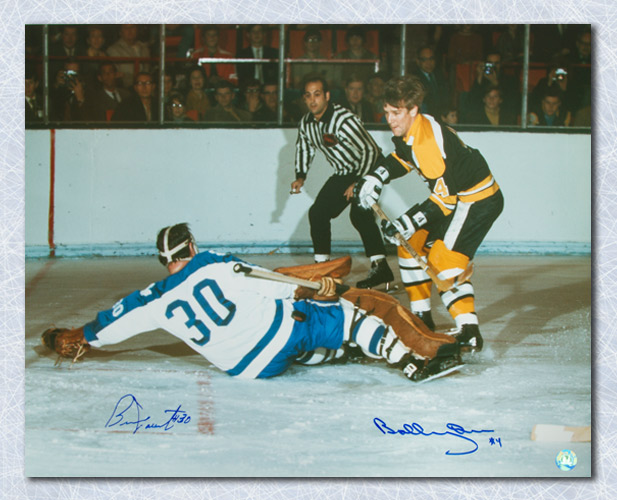 Features- Bobby Orr & Bernie Parent Dual Signed Bruins vs Maple Leafs Photo GNR COA