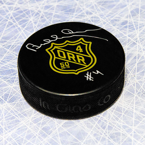 Features- Bobby Orr Autographed 50th Anniversary Rookie Year Hockey Puck GNR COA