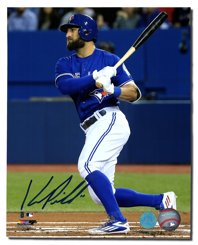 Features- Kevin Pillar Toronto Blue Jays Autographed Blue Jersey Batting Photo