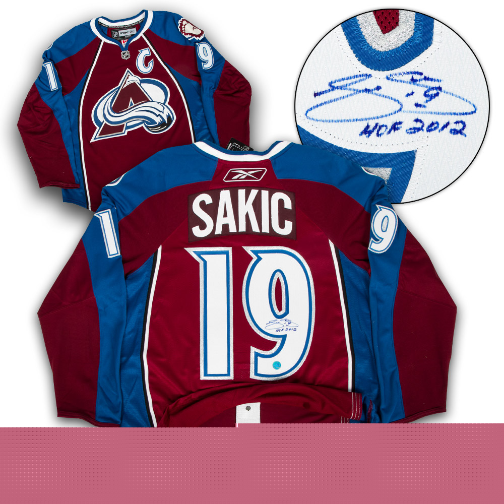 Features- Joe Sakic Colorado Avalanche Autographed Authentic on Ice Jersey with HOF Note