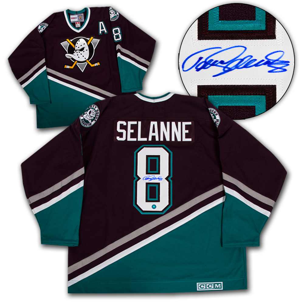 AJ Sports World SELT15500B Teemu Selanne Anaheim Mighty Ducks Autographed Retro CCM Hockey Jersey