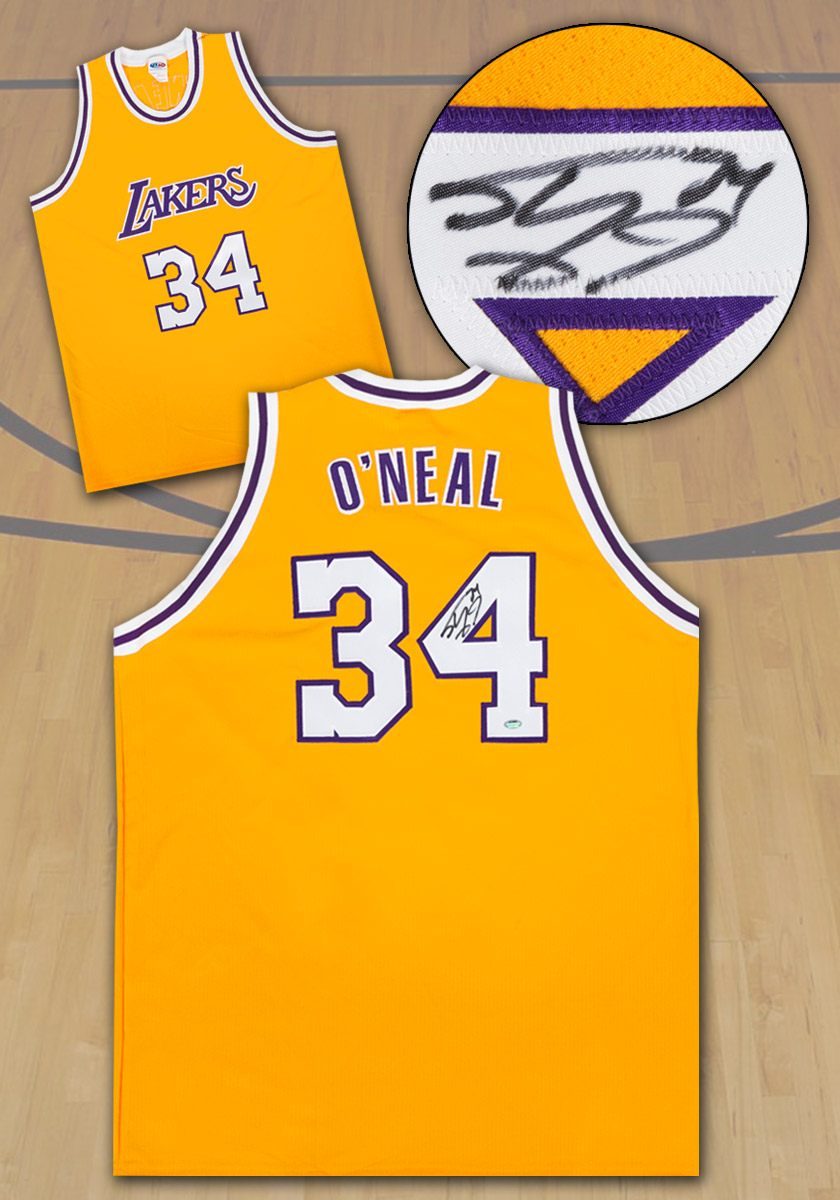 Features- Shaquille O Neal Los Angeles Lakers Autographed Custom Basketball Jersey SS COA