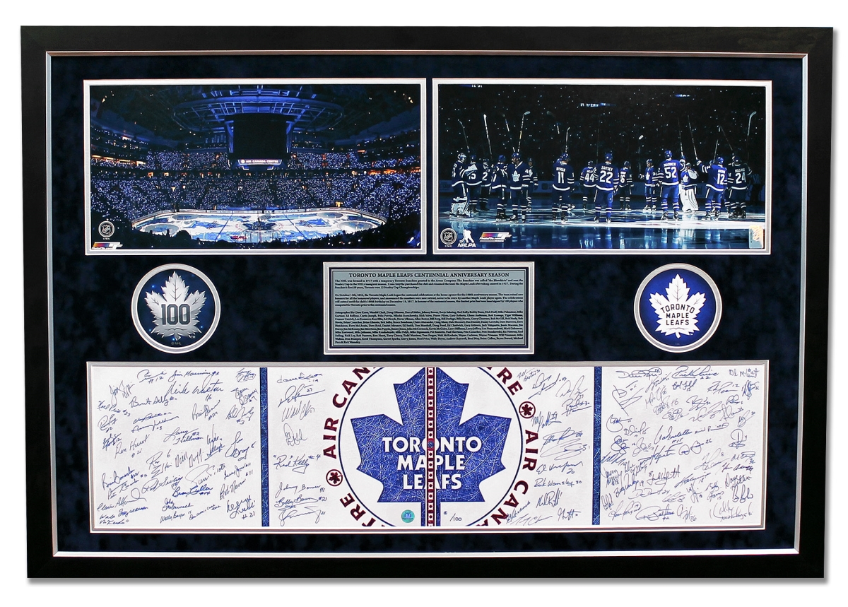 Features- Toronto Maple Leafs Centennial Opening Night 100 Player Signed Frame No. 100