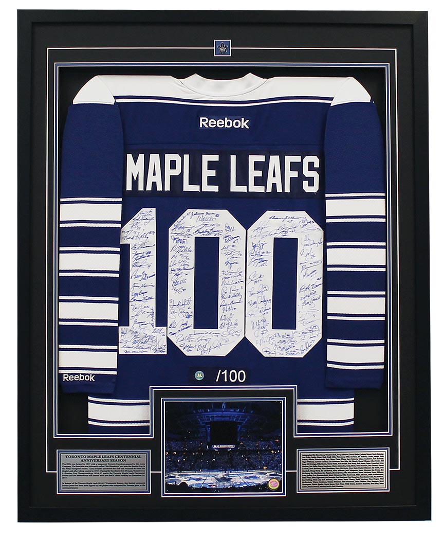 Features- Toronto Maple Leafs Centennial 100 Player Signed Framed Jersey No. 100