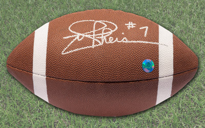 This Hand-Signed Football has been beautifully and personally autographed by Joe Theismann. To protect your investment a Certificate Of Authenticity and tamper evident hologram from A.J. Authentic is included with your purchase for an unconditional lifetime guarantee of authenticity.
