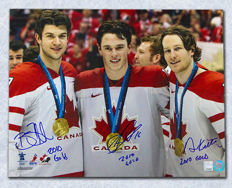 Features- Chicago Blackhawks Toews Keith & Seabrook Signed Team Canada Gold Photo