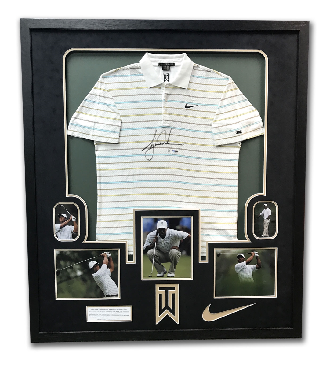 AJ Sports World WOOT00057A 43 x 49 in. Tiger Woods Tournament Worn and Autographed Nike Golf Polo in Frame