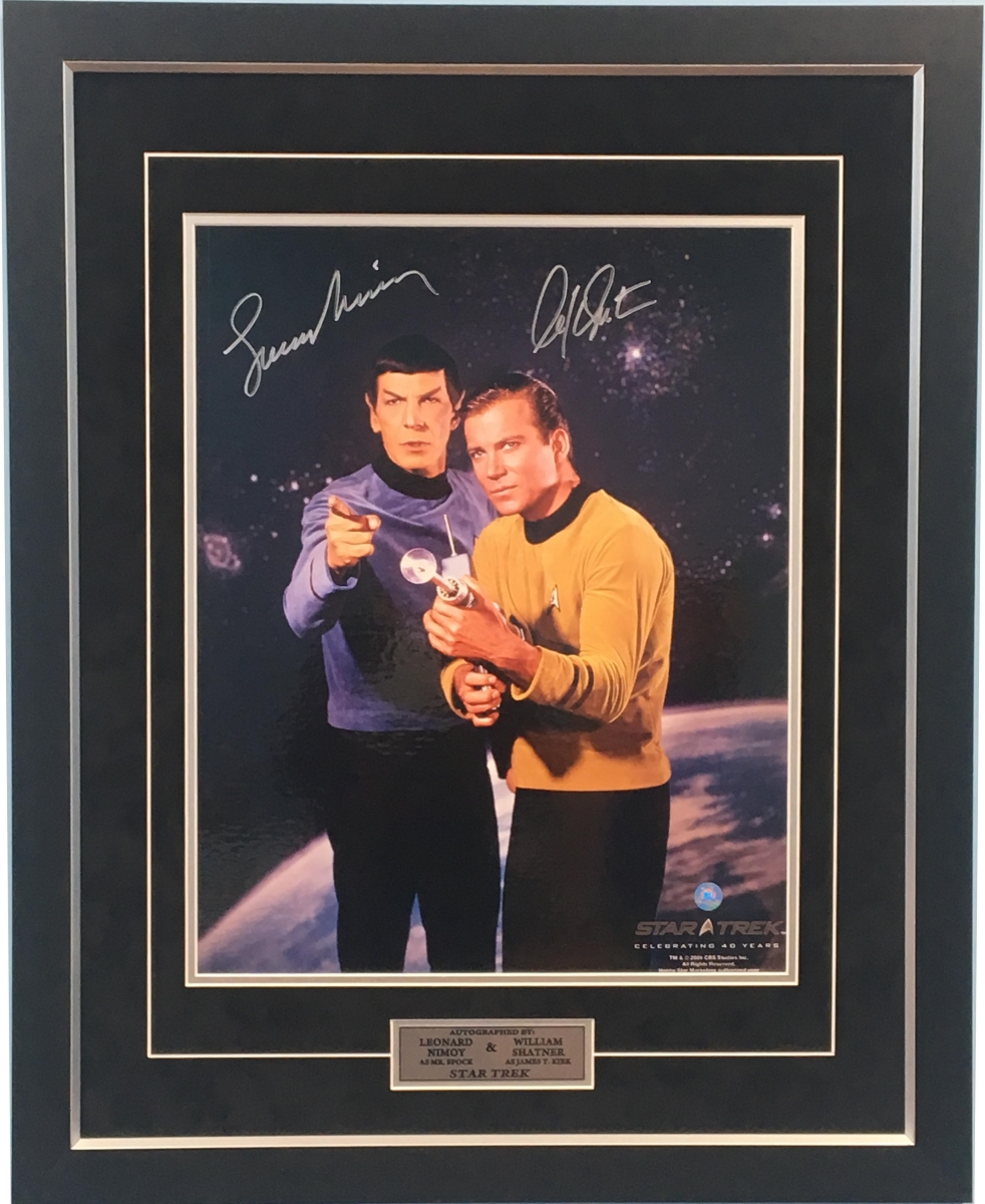 Features- William Shatner Captain Kirk & Leonard Nimoy Spock Signed Star Trek Frame