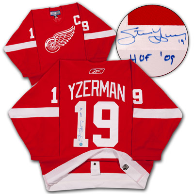 This is an official licensed hand-signed Steve Yzerman Detroit Red Wings jersey. The jersey is brand new with all of the lettering and numbering professionally sewn on. The player has beautifully and personally autographed the number. To protect your investment a Certificate Of Authenticity and tamper evident hologram from A.J. Authentic is included with your purchase for an unconditional lifetime guarantee of authenticity.